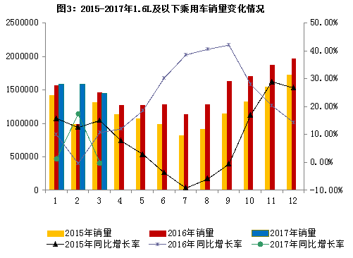 1.1.6升及以下乘用车增速减缓 3月,1.6升及以下乘用车增速减缓,本月销售145.1万辆,同比下降0.1%,占乘用车销量比重为69.2%,同比下降1.3个百分点。 1-3月,1.6升及以下乘用车累计销售419.6万辆,比同期增长4.8%,占乘用车销量比重为70.6%,同比提高0.1个百分点。