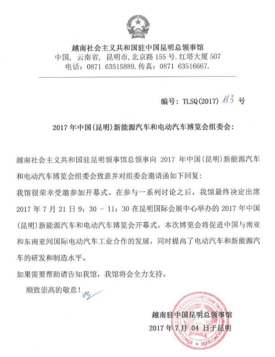 云南作为我国连接南亚和东南亚、印度洋和太平洋的重要通道,也是一带一路和长江经济带等国家战略的交汇支点。本次展会响应一带一路国家战略,获得了中国贸易促进会云南省分会、昆明市发展与改革委员会、昆明市工业和信息化委员会、昆明市博览事务局、昆明市科技局、昆明市商务局、昆明市交通运输局等政府机构的大力支持。越南社会主义共和国驻昆明总领事馆总领事阮士洪、孟加拉人民共和国驻昆明总领事馆总领事道德·阿里、马来西亚驻昆明总领事馆总领事拿督萧进平、老挝人民民主共和国驻昆明总领事馆总领事坎蓬·冯桑迪、缅甸联邦共和国驻昆明总领事馆总领事吴梭柏、泰王国驻昆明总领事馆总领事鹏普·汪披塔亚、柬埔寨驻昆明总领事馆总领事淮立恒、印度驻广州总领事馆总领事唐施恩等八国总领事将出席本次展会。  印度驻广州总领事馆函件