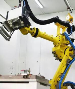 相对于其他碳钢薄板焊接技术,FANUC(AMTS 2017展位号:E3-C01)的R-1000iA/100F机器人激光远程焊,通过机器人进行激光飞行焊和激光雕刻则能实现更高速的焊接,100m/min的最大焊接速度能使生产效率得到提升,热量输入少,热变形小,焊后工件精度更高,并可设计任意形状的焊缝。
