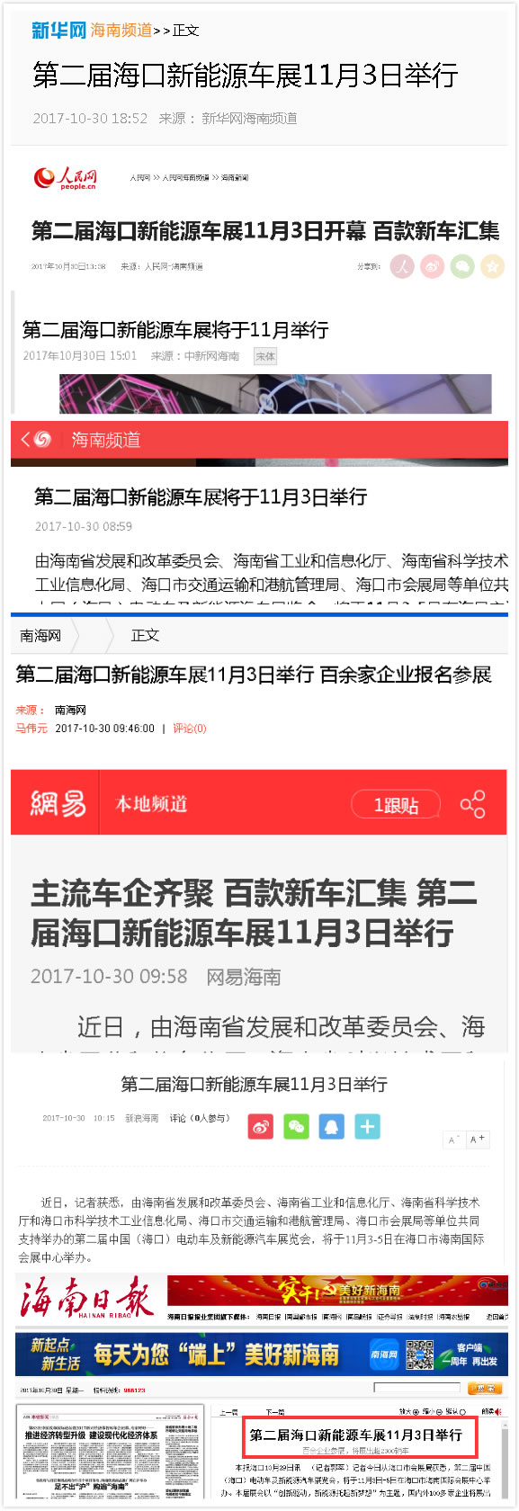 (二)专业采购团加持,现场成交量值得期待 组委会邀请了超过50个专业采购团前来参观采购,包括海口市公交集团公司、三亚市公交集团公司、海南大学机电工程学院、海南省汽车租赁行业协会、海南省旅行社协会、海南省新能源汽车发展促进联盟、海南省新能源汽车行业协会、海口市电动自行车行业、海南嗒嗒科技有限公司、悟空快运、海南北汽银建易乐智慧出行科技有限公司、海南华锦新能源汽车有限公司、苏州百越新能源汽车有限公司、上海捷泰新能源汽车有限公司、沃德卡(深圳)新能源汽车有限公司、地上铁(深圳)有限公司等单位负责人将会莅临现场,预计将有超过30000名专业观众和市民观摩展会。 (三)百家媒体聚焦,助力海南新能源电动车第一展 连日来,除了海南日报、海口日报、南国都市报、海南特区报、国际旅游岛商报、海南电视台、海口电视台、海南新闻广播、海口交通广播、南海网、海南在线、海口网等众多海南当地大众权威媒体对本届展会进行报道外,新华网、人民网、中新网、新浪网、凤凰网、网易等中央权威媒体和门户网站,以及中国电动汽车网、第一电动、中国电动车网、全球电动网、中国新能源汽车网等权威行业媒体也纷纷深度追踪报道本次展会,引发行业内外新一轮的关注热潮。 据悉,展会现场更是有海南新闻广播、新浪微博等平台将全程直播展会,让更多的人可以关注了解到展会的实时状况。 (四)巅峰会议聚焦行业热点,引领产业发展趋势 展会期间还将举办多场技术研讨会、产品推介会、招商洽谈会,最令人期待的就是组委会将联合参展企业将于11月3日共同举办“海南电动车行业经销商财富提升论坛暨共享快租合作人招募大会”,共同研究探讨电动车、共享电动汽车行业人士关心的领域。展会汇聚厂商、用户多方资源,成为海南新能源汽车、电动车顶尖的交流平台。